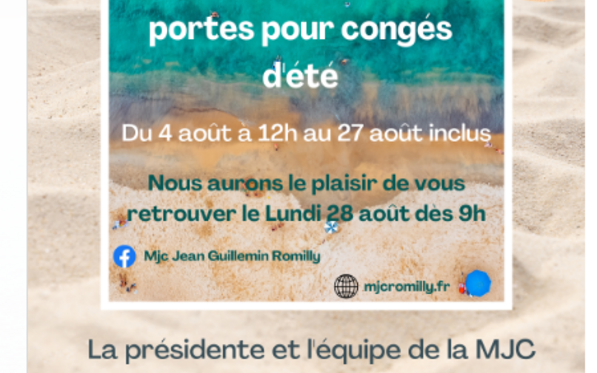 MJC « JEAN GUILLEMIN » TEST - propulsé par GOasso    ·       mjcromilly@gmail.com       03 25 39 59 90